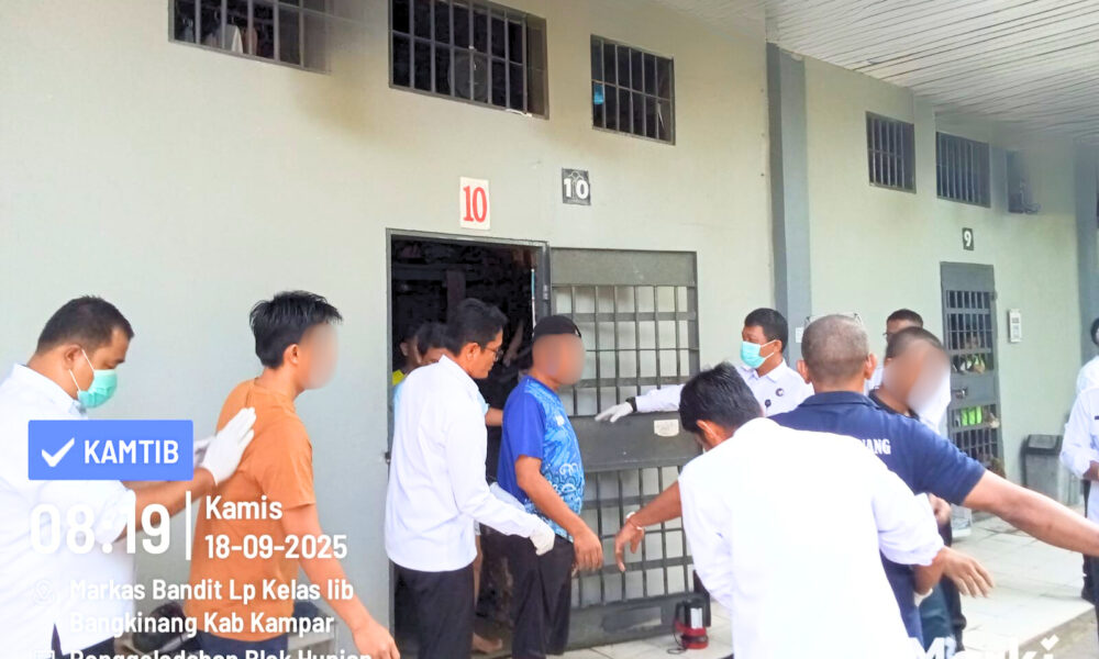 Inilahkampar-BANGKINANG – Lembaga Pemasyarakatan (Lapas) Kelas IIA Bangkinang kembali melaksanakan razia insidentil di kamar hunian Warga Binaan Pemasyarakatan (WBP) pada Kamis (18/09/2025). Kegiatan ini dilakukan sebagai...