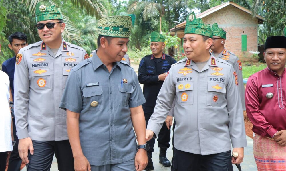 XIII Koto Kampar – Bupati Kampar, H. Ahmad Yuzar, S.Sos.MT dampingi Kapolda Riau, Irjen Pol Herry Heryawan dan Waka Polda Riau meninjau Pembangunan Jembatan Presisi Polri...