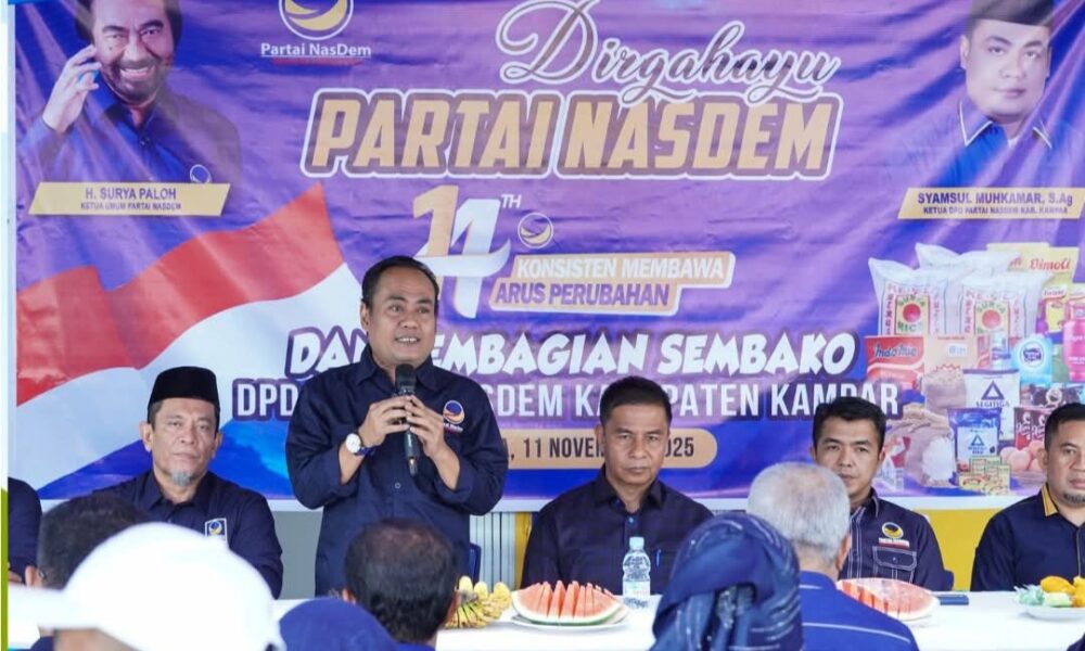 Inilahkampar-BANGKINANG- DPD Partai Nasdem Kabupaten Kampar gelar peringatan HUT Partai NasDem ke-14 tahun yang di gelar di kantor DPD NasDem Kampar, Jalan Tengku Umar Bangkinang, Selasa...